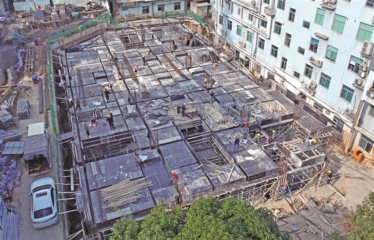 “目前,该项目已完成地下室底板、半地下室及地上一层混凝土浇筑,地下室防水卷材、保温层及集配沙回填,正在进行地上二层的模版施工。”现场施工人员介绍。