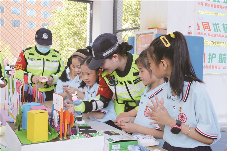活动现场,设置了交通手工区、装备展示区和百米画卷区。少先队员们摆出百米画卷,与“交通侠”一起,以“平安出行快乐成长”为主题,共同创作交通安全画卷,用画笔表达对文明交通、平安出行的美好向往,最后,“交通侠”还为绘画优胜选手颁发奖章。