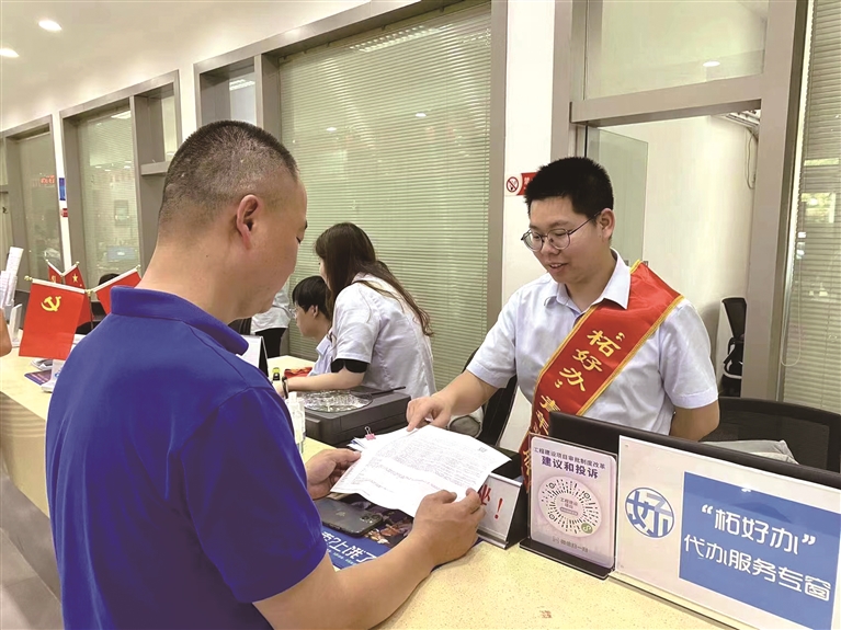 7月11日,柘荣县交通运输局局长刘茂周在政务服务窗口接待来访村民时,研究并同意村道建设项目的申报,由原来乡镇作为业主更改为村级担任项目业主的诉求,目前,已有两条村道由村级担任项目业主进行申报并完成审批,及时解决了安征迁及项目建设过程中出现的问题。