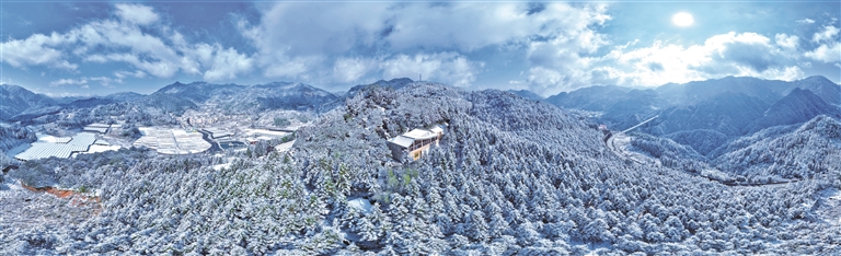 周宁县三库生态文明学习实践基地雪景航拍图。李何颖 摄