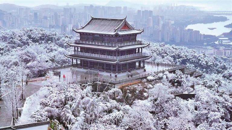 蕉城区镜台山靖海楼雪景。陈剑峰 摄