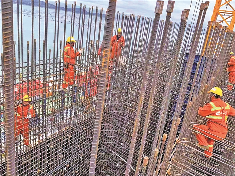 春节假期大街小巷年味浓,走进宁上高速A1标段东吾洋特大桥施工现场,记者见到一派热火朝天施工景象,工人们头戴安全帽,身穿厚重的工作服,在寒风中紧张地忙碌着,焊接声、切割声此起彼伏。按照施工计划,项目部在春节期间组织人力、物力,重点施工全线关键性节点东吾洋特大桥的14#-16#主墩承台及墩身,为在元宵节前完成3个主墩承台的施工任务打好基础。