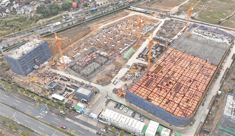 在宁德盛丰智慧物流中心项目建设现场,工人们全力以赴,互相配合,快速推进项目建设。“1#物流仓储二层梁板模板安装完成50%,2#物流仓储基础完成90%,3#综合楼主体结构封顶完成。接下来将加速冲刺项目建设,争取早日建成投用。”现场负责人王兆羽说。